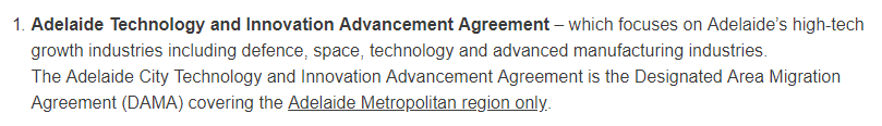 - Adelaide Technology and Innovation Advancement Agreement此协议主要面向南澳快速发展的高科技产业,如国防、航空航天、科技领域、先进制造业等。此协议仅限阿德莱德大都会地区的申请人申请。