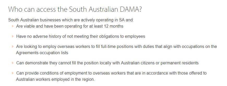 南澳的DAMA协议将通过482雇主担保签证类别下的劳工协议分支,DAMA协议包含更多的职业并有额外的优惠政策。