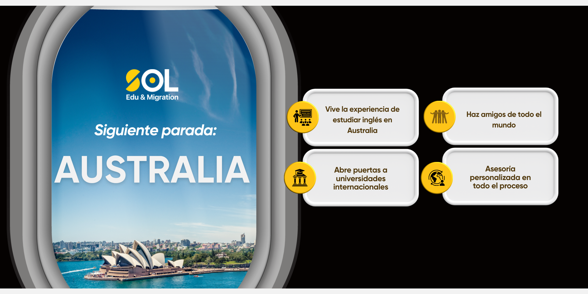 En SOL Edu & Migration te guiamos durante todo el proceso: aplicación al curso, gestión de tu visa, preparación para tu viaje y acompañamiento en tu adaptación en Australia. No solo vienes a estudiar inglés. Vienes a construir una experiencia internacional que puede abrirte puertas académicas y migratorias.