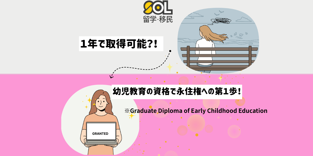 Graduate Diplomaは、Early Childhood Teacher(ECT)としてスキルドビザや永住ビザを申請するための学位要件を満たすことができます。さらに、1年のコースで修了できるため、卒業ビザの有効期限内に学び終えることができ、リスクや費用の大きい学生ビザの再申請が不要です。