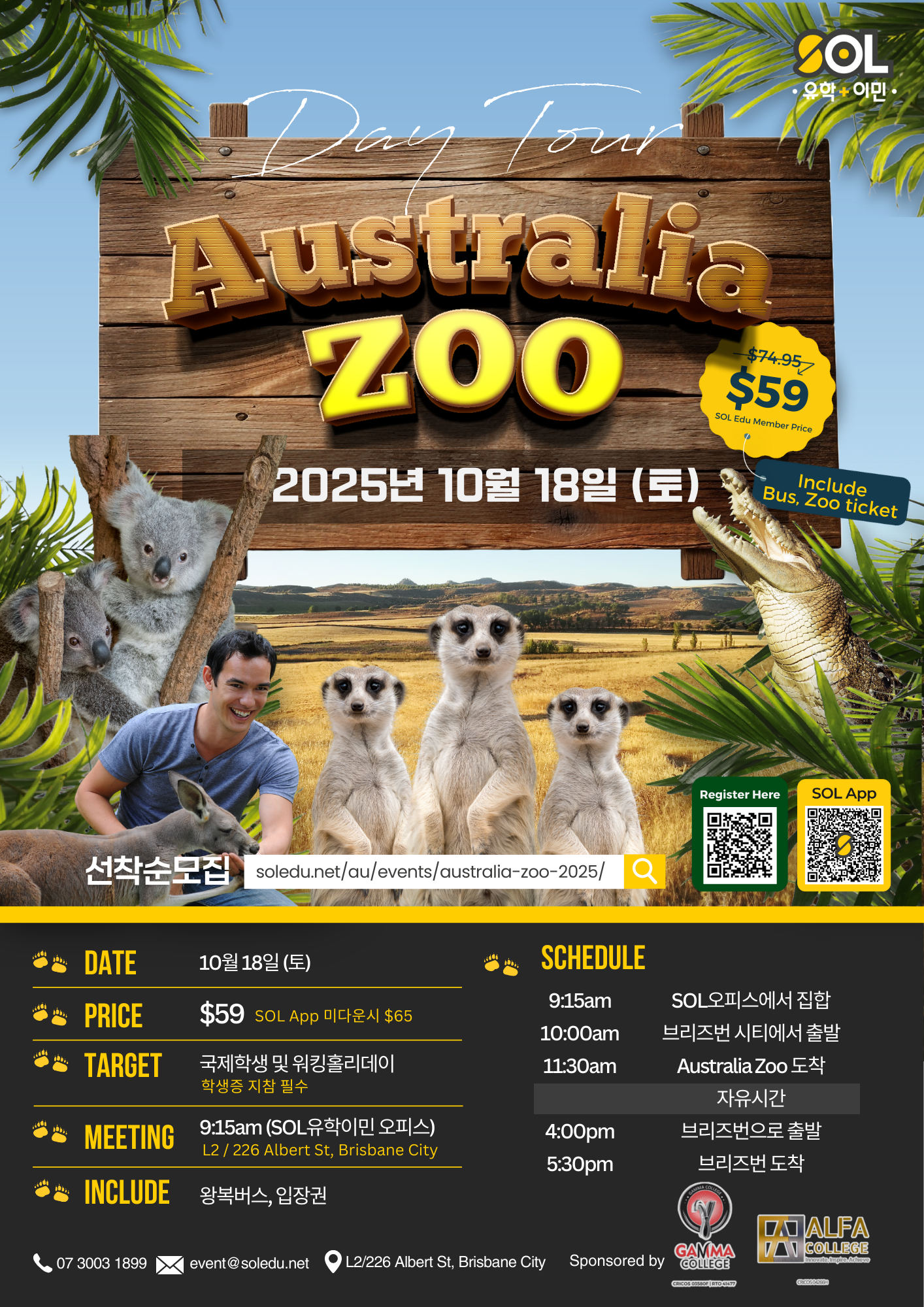 📌 신청: https://www.soledu.net/au/events/australia-zoo-2025/