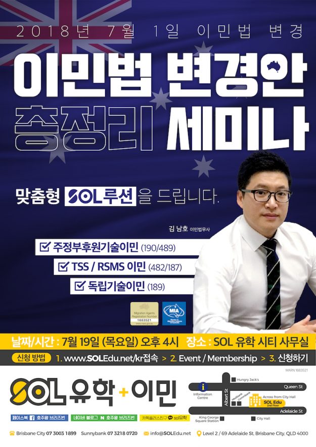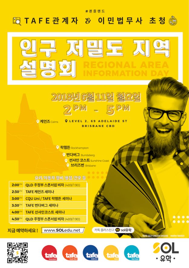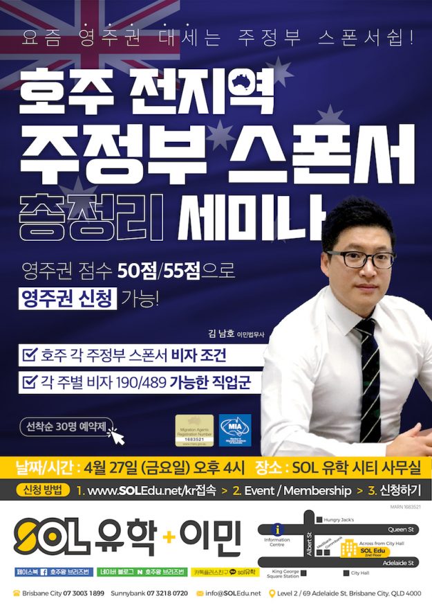 호주유학ㆍ이민 전문 에이전시 SOL 유학/이민에서 호주 인구 저밀도 지역(Regional area)으로의 유학 및 이민 정책에 대한 설명회를 개최한다. 호주 정부의 이민 관련 정책이 변경됨에 따라, 인구가 포화하는 시드니 또는 멜버른과 같은 대도시에서 보다 전문 인력이 부족한 인구 저밀도 지역(Regional area)으로의 유학 및 이민이 각광 받으며 가능성도 높아졌다고 한다. 따라서, SOL 유학/이민은 호주에서의 이민을 계획하는 학생들을 보다…