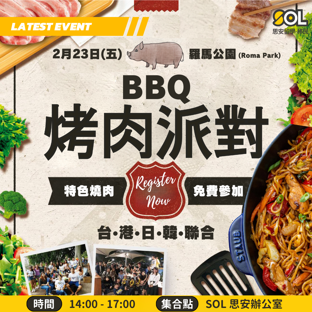 Last Updated on 16/02/2024 台港日韓聯合烤肉派對!各國各色烤肉任你吃! 活動詳情 活動:台港日韓聯合烤肉派對! 日期:2024年02月23日 (星期五) 時間:14:00 – 17:00 地點: 報到點:思安辦公室 (Level 2/226 Albert St, Brisbane City QLD) 烤肉點:Roma Park (1 Parkland Blvd, Brisbane City QLD) 價錢:免費,現場提供台港日韓特色燒烤任你吃 ‼️留學生、打工度假簽證者優先‼️