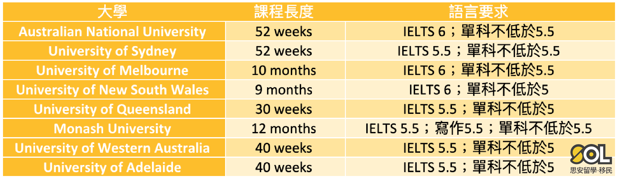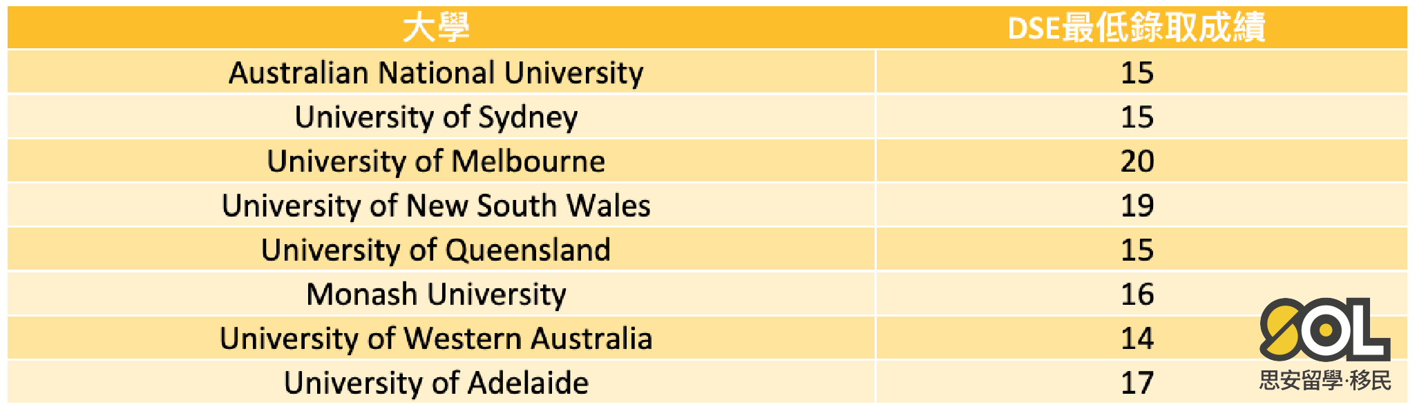 SOL思安今天就同你了解下 用DSE成績申請澳洲八大Bachelor degree的要求、IELTS 要考到幾多分、熱門的科目、畢業工作簽證,以及香港人移民澳洲的pathway!