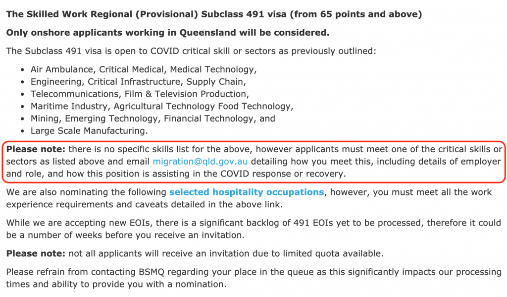 昆州州政府只邀請了在優先技術移民清單 (Priority Migration Skilled Occupation List; PMSOL) 內的職業